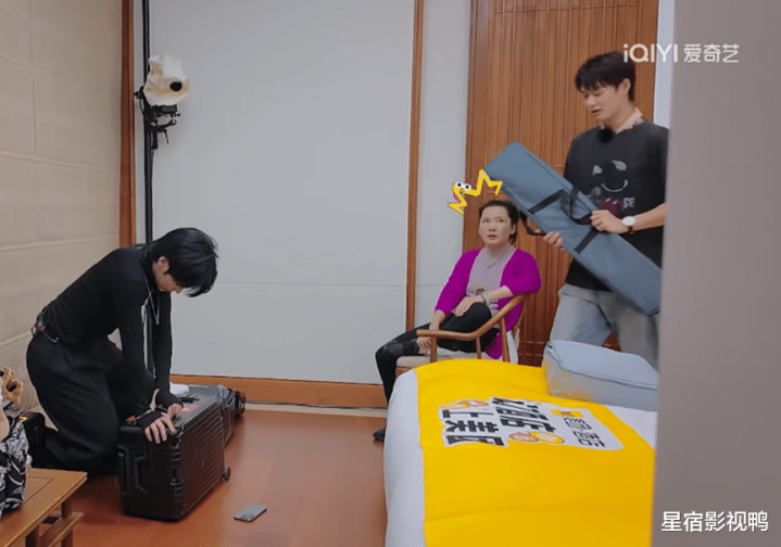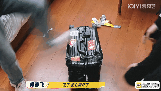 何赛飞的行李箱锁住,找柯淳和邵子恒帮忙打开箱子,而这两兄弟摆弄了一阵发现打不开后,就想要借助工具将锁砸开。