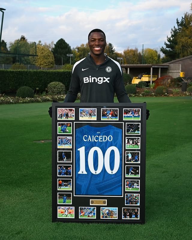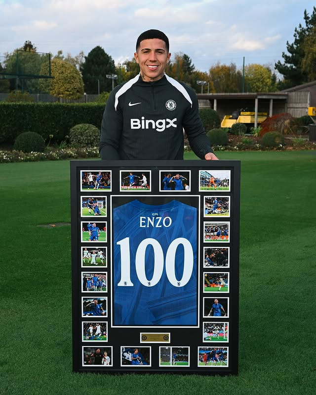 切尔西官方社媒晒照, 为恩佐、凯塞多等5人颁发百场纪念相框
