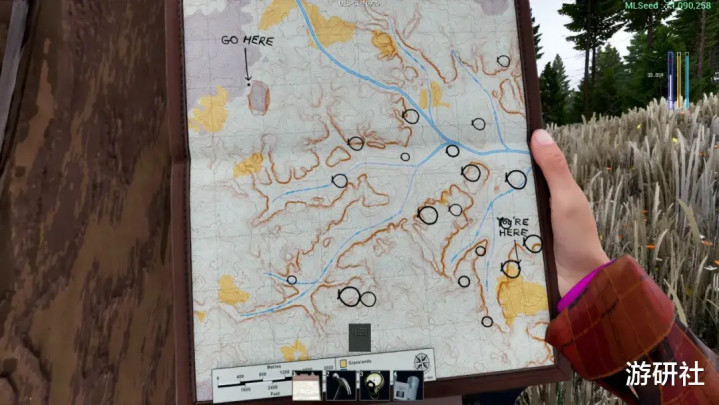 而另一个棘手的问题则是《Prologue》中的地图,在这里并没有电子游戏中常见的、实时显示角色位置的地图,只有一张最原始的静态纸质地图,和一个普通指南针。靠着比例尺、等高线等知识“古法认图”,多少有些“硬核”过头了,配合游戏中那个堪称“地狱开局”的场景,对于习惯了各种便利科技的现代人而言的确有几分“没苦硬吃”的味道。